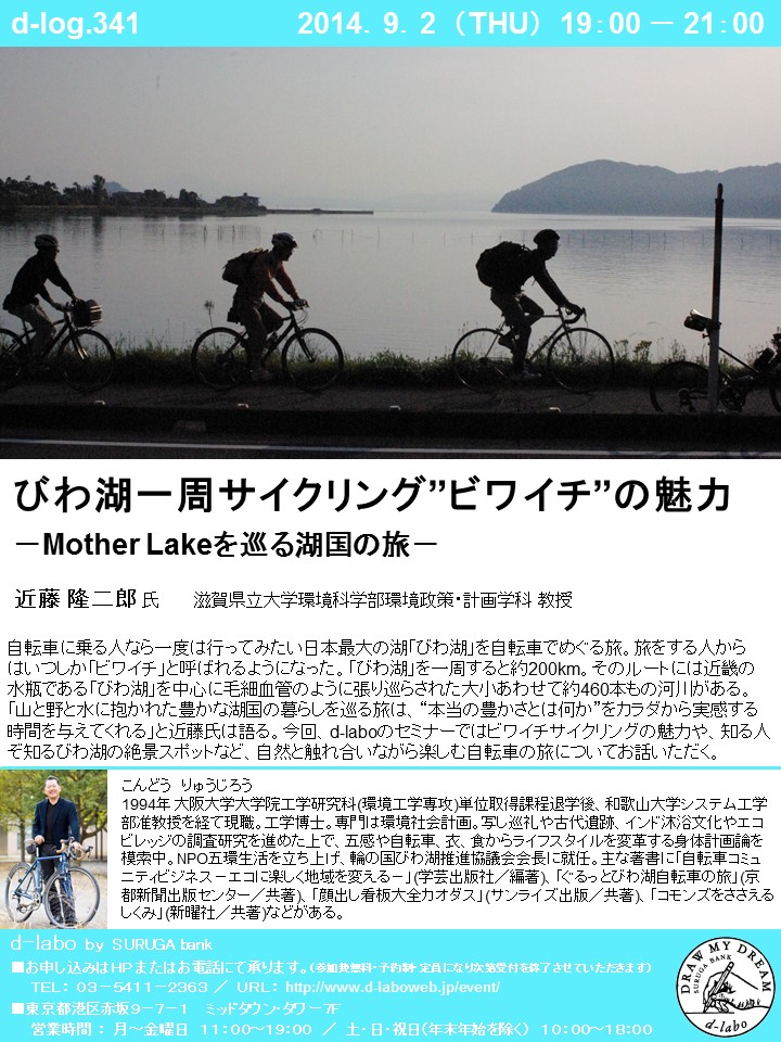 https://pid.nhk.or.jp/event/PPG0248803/自転車に乗る人なら一度は行ってみたい日本最大の湖「びわ湖」を自転車でめぐる旅。旅をする人からはいつしか「ビワイチ」と呼ばれるようになった。「びわ湖」を一周すると約200km。そのルートには近畿の水瓶である「びわ湖」を中心に毛細血管のように張り巡らされた大小あわせて約460本もの河川がある。「山と野と水に抱かれた豊かな湖国の暮らしを巡る旅は、“本当の豊かさとは何か”をカラダから実感する時間を与えてくれる」と近藤氏は語る。今回のセミナーではビワイチサイクリングの魅力や、知る人ぞ知るびわ湖の絶景スポットなど、自然と触れ合いながら楽しむ自転車の旅についてお話しいただく。