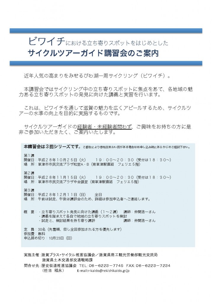 ビワイチにおける立ち寄りスポットをはじめとした、サイクルツアーガイド講習会のご案内