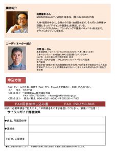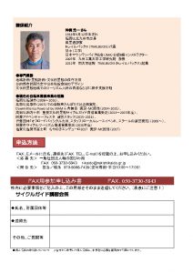 本講習会は2回シリーズです。ご都合により参加出来ない回がある場合はお申し込み時にあらかじめご相談下さい。