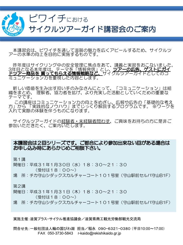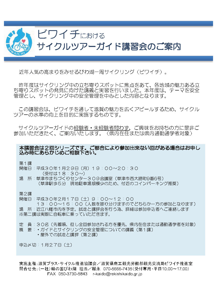 ビワイチにおける サイクルツアーガイド講習会のご案内