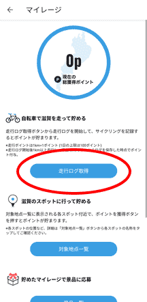 マイレージのトップ画面から「走行ログ取得」を押します。