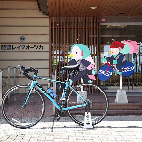 来店時にスタッフに地点獲得画面を提示すると、アマビエ飛び出し坊やと愛車を一緒に撮影できるよう自転車のスタンドをお貸しします。 -