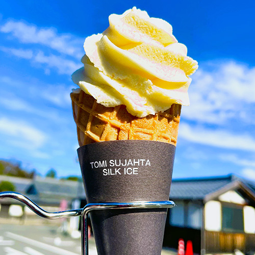日野まちかど感応館 新館「みかく」にて、地点獲得画面を提示された方は、通常300円のシルクアイスを100円割引(1画面につき1人が利用可能