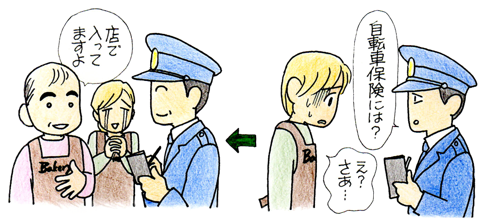 たとえば、従業員が自転車で商品配達中に通行人に衝突して怪我をさせたような場合の損害が補償されます。